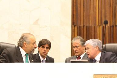 | Keywords: sessão groupshot people indoor Deputados Rasca Rodrigues (PV), André Bueno (PDT), o prefeito de Cascavel Edgar Bueno e o presidente da AL Valdir Rossoni (PSDB) Foto: Nani Gois Deputados Rasca Rodrigues (PV), André Bueno (PDT), o prefeito de Cascavel Edgar Bueno e o presidente da AL Valdir Rossoni (PSDB) Foto: Nani Gois |