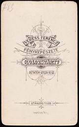 | Keywords: Sétatér utca 16., Veress Ferenc fényképészete. Fortepan 81416.jpg Check categories 2016 August 28 hu Sétatér utca 16 Veress Ferenc fényképészete Location Romania Transylvania Cluj-Napoca Tags verso photographer studio Title Sétatér utca 16 Veress Ferenc fényképészete http //www fortepan hu/_photo/download/fortepan_81416 jpg 1900 Fortepan 81416 http //www fortepan hu/_photo/download/fortepan_81416 jpg http //www fortepan hu/ lang en img 81416 Unknown The release at fortepan hu is CC-BY-SA-3 0 As the photographer is unknown or pseudonymous and the photograph is Age 1900 01 01 years old it is considered public domain both in the country of publication Hungary and the USA where Wikimedia Commons is hosted See Fortepan HU for more information on related uploads PD-anon-70-EU PD-1923 PD-1923 DEFAULTSORT Fortepan 081416 1900 photographs Images uploaded by Fæ |