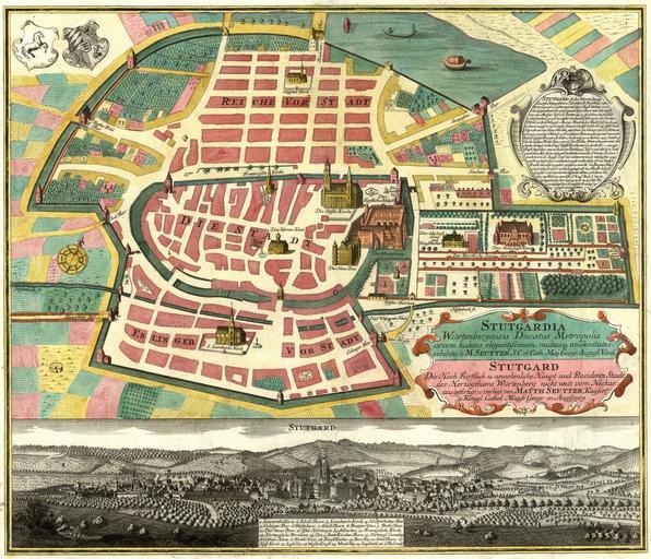 Keywords: Seutter Stutgardia Würtenbergensis Ducatus Metropolis.jpg Stutgardia Würtenbergensis Ducatus Metropolis arcem habens eleganitssimam multasq; amoenitates Stutgard Die Hoch Fürstlich u annehmliche Haupt und Residentz Stadt des Herzogthums Würtenberg nicht weit vom Neckar / exhibita à M Seutter S C et Cath Maj Geogr August Vind ; ausgefertigt u verlegt von Matth Seutter Kayserl u Königl Cathol Majest Geogr in Augsburg Kartensammlung Moll http //mapy mzk cz/de/mzk03/001/060/801/2619268449/ between 1730 1760 Creator Matthäus Seutter PD-old-100 History of Stuttgart Maps of Stuttgart 17xx Maps by Seutter Moll's map collection |