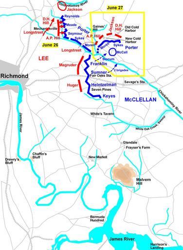 | Keywords: Seven Days June 26-27.jpg Map of the en Seven Days Battles en Peninsula Campaign of the en American Civil War actions on June 26-27 1862 Drawn by Hal Jespersen in Macromedia Freehand Source file available in http //posix com/CWmaps The reason this is a JPEG is that I have found that PNG versions Transferred from http //en wikipedia org en wikipedia; transfer was stated to be made by User Hejsa 2006-03-05 Original uploader was Hlj at http //en wikipedia org en wikipedia Released into the public domain by the author en wikipedia Hlj original upload log page en wikipedia Seven_Days_June_26-27 jpg 2006-03-05 19 03 Hlj 1534×2088× 493628 bytes <nowiki>Map of the Seven Days Battles Peninsula Campaign of the American Civil War actions on June 26-27 1862 Drawn by Hal Jespersen in Macromedia Freehand Source file available in http //posix com/CWmaps The reason this is a JPEG is that I ha</nowiki> Seven Days Battles Battle of Mechanicsville Battle of Savage's Station Maps of the Seven Days Battles |