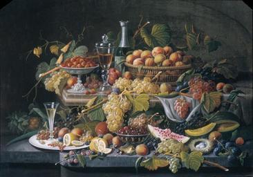 | Keywords: Severin Roesen - Still Life, Fruit.jpg Artwork creator Severin Roesen 1855 Technique oil canvas cm 91 4 127 institution Metropolitan Museum of Art Gallery 736 object history credit line Rogers Fund 1963 still life 63 99 20012303 other versions <gallery> File Severin Roesen jpg detail </gallery> PD-old-100-1923 Severin Roesen American paintings in the Metropolitan Museum of Art 1850s still-life paintings Still life paintings of fruits 1855 paintings Paintings of fruit baskets Still life paintings in the United States |