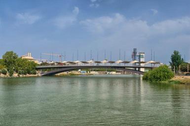 Keywords: seville spain bridge river reflections architecture city cities urban outside