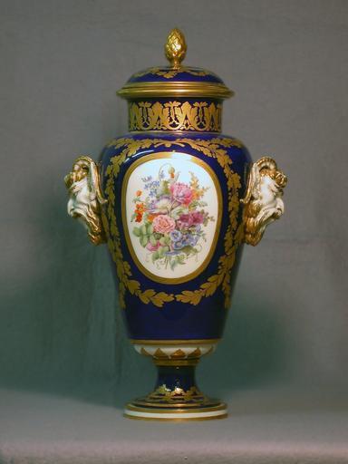Keywords: Sèvres Porcelain Manufactory - One of a Pair of Vases (Vase à bandes) - Walters 48560 - Back.jpg Walters Art Museum artwork Creator Manufacture nationale de Sèvres This neoclassical vase is distinguished by its satyr-head handles At Sèvres a plaster model for these shapes is inscribed with the name of the sculptor Etienne-Maurice Falconet 1716-1791 but the designer was more likely the director of sculpture at the manufactory Louis-Simon Boizot 1743-1809 Jean-Louis Morin 1731-1787 decorated the vases with harbor scenes and Jean Pierre Boulanger père 1722-1785 was responsible for the gilding 1776 soft-paste porcelain with paint and gilt cm 42 6 accession number 48 560 12454 Lady Ashburaton Collection E M Hodgkins Collection Paris no 45 date and mode of acquisition unknown A Seligmann Rey and Co New York Henry Walters city Baltimore Walters Art Museum Henry Walters Acquired by Henry Walters 1928 Factory Mark Intertwined L1s in blue; Date Letter in blue Y 1776 ; Decorator's Mark In blue M Morin Jean-Louis ; Gilder's Mark In blue B Boulanger Jean Pierre place of origin Sèvres France Walters Art Museum license Sèvres porcelain in the Walters Art Museum Media contributed by the Walters Art Museum needs artist review Jean-Louis Morin Louis-Simon Boizot Gilded vases |
