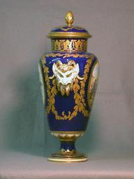 Keywords: Sèvres Porcelain Manufactory - One of a Pair of Vases (Vase à bandes) - Walters 48560 - View A.jpg Walters Art Museum artwork Creator Manufacture nationale de Sèvres This neoclassical vase is distinguished by its satyr-head handles At Sèvres a plaster model for these shapes is inscribed with the name of the sculptor Etienne-Maurice Falconet 1716-1791 but the designer was more likely the director of sculpture at the manufactory Louis-Simon Boizot 1743-1809 Jean-Louis Morin 1731-1787 decorated the vases with harbor scenes and Jean Pierre Boulanger père 1722-1785 was responsible for the gilding 1776 soft-paste porcelain with paint and gilt cm 42 6 accession number 48 560 12454 Lady Ashburaton Collection E M Hodgkins Collection Paris no 45 date and mode of acquisition unknown A Seligmann Rey and Co New York Henry Walters city Baltimore Walters Art Museum Henry Walters Acquired by Henry Walters 1928 Factory Mark Intertwined L1s in blue; Date Letter in blue Y 1776 ; Decorator's Mark In blue M Morin Jean-Louis ; Gilder's Mark In blue B Boulanger Jean Pierre place of origin Sèvres France Walters Art Museum license Sèvres porcelain in the Walters Art Museum Media contributed by the Walters Art Museum needs artist review Jean-Louis Morin Louis-Simon Boizot Gilded vases |