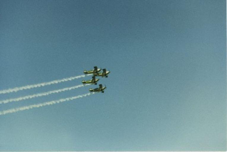 | Keywords: best of sdasm bestofsdasm outdoor Catalog #: SF-26 Notes: October 4, 1987 - El Paso, TX The Holiday Inn Aerobatic Team performs at the Amigo Air Show in Pitts S-1 airplanes. Repository: San Diego Air and Space Museum Archive Catalog #: SF-26 Notes: October 4, 1987 - El Paso, TX The Holiday Inn Aerobatic Team performs at the Amigo Air Show in Pitts S-1 airplanes. Repository: San Diego Air and Space Museum Archive | ||||