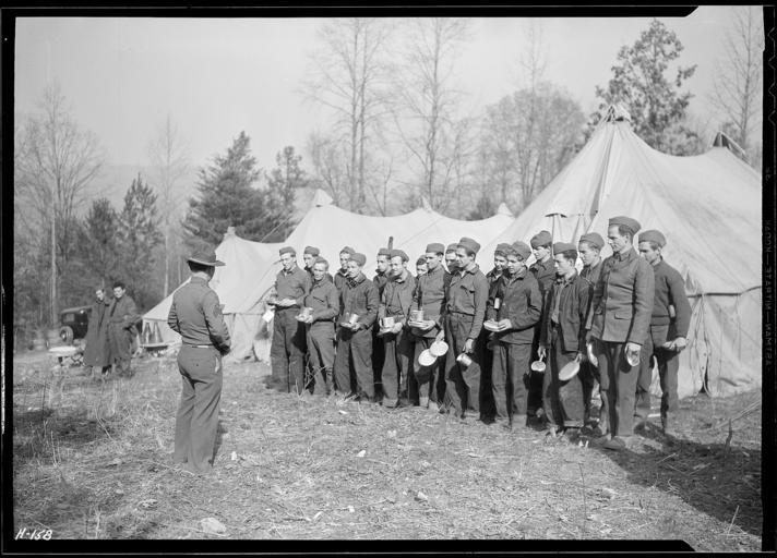 | Keywords: nara:arcid=532776 u.s. national archives usnationalarchives lewis hine lewishine blackandwhite monochrome photo border outdoor black and white Original Caption: Sgt. Burke, of the U.S. Army, talking to a group of boys just arrived from New York as replacements for CCC Camp, TVA #22, near Esco, Tennessee, telling them the rules of the camp before they go to their lunch. Behind the boys are some of the tents in which they are living, pending the completion of the barracks which will be their winter quarters. The iron cones behind the two boys at the left of the picture are heating stoves for the tents, November 1933 U.S. National Archives’ Local Identifier: 142-H-158 Photographer: Hine, Lewis Subjects: New Deal, 1933-1939 Rural areas Tennessee (United States, North and Central America) state Water projects Persistent URL: research.archives.gov/description/532776 Repository: Still Picture Records Section, Special Media Archives Services Division (NWCS-S), National Archives at College Park, 8601 Adelphi Road, College Park, MD, 20740-6001. For information about ordering reproductions of photographs held by the Still Picture Unit, visit: www.archives.gov/research/order/still-pictures.html Reproductions may be ordered via an independent vendor. NARA maintains a list of vendors at www.archives.gov/research/order/vendors-photos-maps-dc.html Access Restrictions: Unrestricted Use Restrictions: Unrestricted Original Caption: Sgt. Burke, of the U.S. Army, talking to a group of boys just arrived from New York as replacements for CCC Camp, TVA #22, near Esco, Tennessee, telling them the rules of the camp before they go to their lunch. Behind the boys are some of the tents in which they are living, pending the completion of the barracks which will be their winter quarters. The iron cones behind the two boys at the left of the picture are heating stoves for the tents, November 1933 U.S. National Archives’ Local Identifier: 142-H-158 Photographer: Hine, Lewis Subjects: New Deal, 1933-1939 Rural areas Tennessee (United States, North and Central America) state Water projects Persistent URL: research.archives.gov/description/532776 Repository: Still Picture Records Section, Special Media Archives Services Division (NWCS-S), National Archives at College Park, 8601 Adelphi Road, College Park, MD, 20740-6001. For information about ordering reproductions of photographs held by the Still Picture Unit, visit: www.archives.gov/research/order/still-pictures.html Reproductions may be ordered via an independent vendor. NARA maintains a list of vendors at www.archives.gov/research/order/vendors-photos-maps-dc.html Access Restrictions: Unrestricted Use Restrictions: Unrestricted |