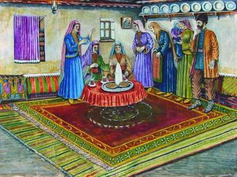 | Keywords: Shalom Koboshvili. Sugar and bread Engagement. gouache on paper. 30.5 × 40cm.jpg Artwork Creator Shalom Koboshvili ka შაქარ-პური იშ ბა - 1937 1941 gouache paper cm 30 5 40 object history exhibition history credit line accession number http //www amuse-all net/gallery/gallery php gallery 5 id 116 p 24 www amuse-all net Paintings by Shalom Koboshvili Fur hats in art Georgian Jews in art Gouache paintings Fur fashion in 1939 PD-old-auto 1941 | ||||