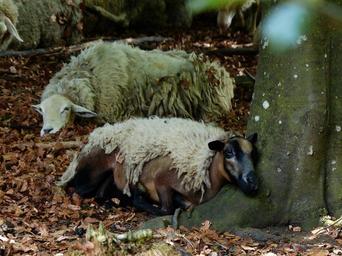 Keywords: sheep concerns sleep rest forest log schur wool animals tired