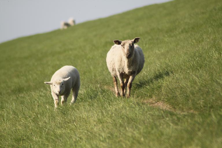 Keywords: sheep dyke lamb animal dike nordfriesland meadow lamb