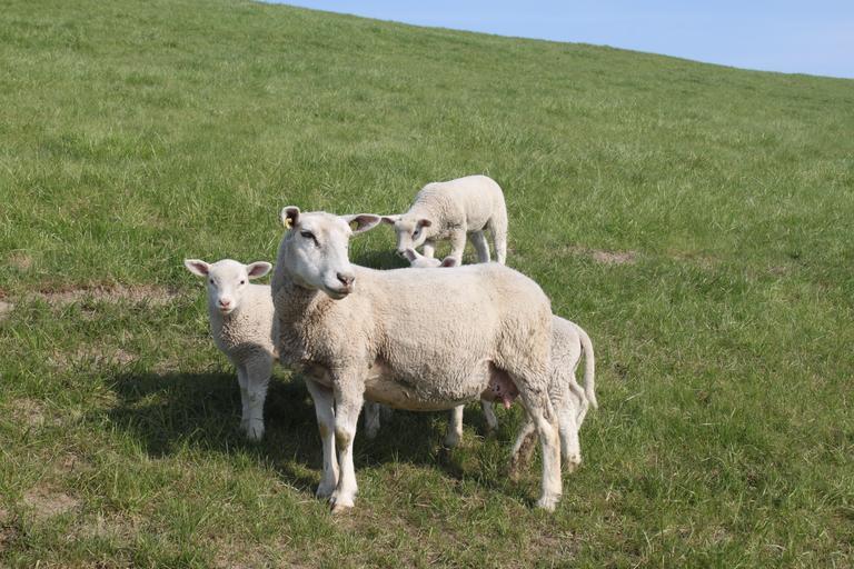 Keywords: sheep dyke lamb animal dike nordfriesland meadow lamb