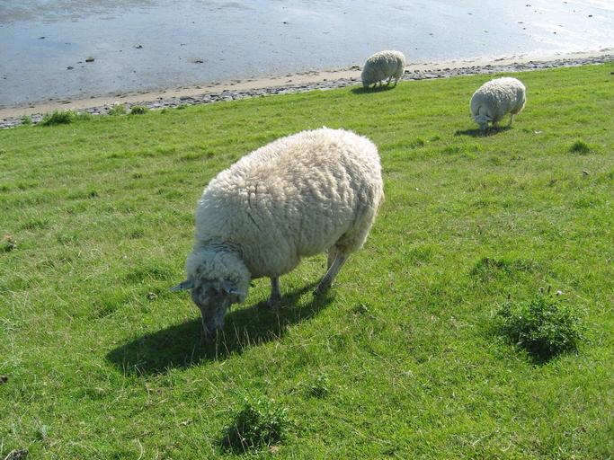 Keywords: sheep grass meadow pasture rush animal sylt sheep's wool herd animal north sea dike