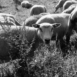 Keywords: sheep graze eat outdoor nature livestock flock of sheep flock tierhaltung welfare bio eco eye contact see hunger grass