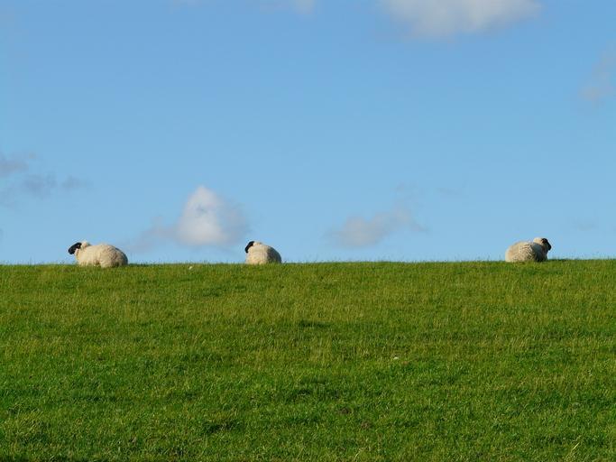 Keywords: sheep group rest concerns graze wool rhön sheep dike meadow grass north sea landscape idyll relaxation fresh chill out