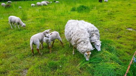 Keywords: sheep lamb puppies animal baby animal sweet little curious cute green nutrition nature chan grass greens graze sheep grazing food healthy eating lambs sheeps mom dad