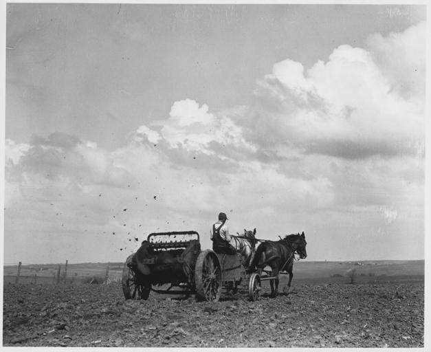Keywords: Shelby County, Iowa.... Detailed description, These pictures show how people in this locality preser . . . - NARA - 522437.jpg These pictures show how people in this locality preserve the fertility of their land This image shows a manure spreader being loaded and operated This last is not a usual or necessary practice and no farmer has enough barnyard manure for all his tillage This operator however puts all he has on the land and believes that it is worth his while to do so since it acts to make a good crop better General notes 522437 Local identifier 83-G-44268 Department of Agriculture Bureau of Agricultural Economics Division of Economic Information ca 1922 - ca 1953 Rusinow Irving Photographer 5307166 <br /> Still Picture Records Section Special Media Archives Services Division NWCS-S National Archives at College Park 8601 Adelphi Road College Park MD 20740-6001 1941 05 02 - _These_pictures_show_how_people_in_this_locality_preser_ _ _ _-_NARA_-_522437 jpg jpg </gallery> NARA-cooperation PD-USGov Horse-drawn wagons in the United States Manure spreaders Irving Rusinow Shelby County Iowa |