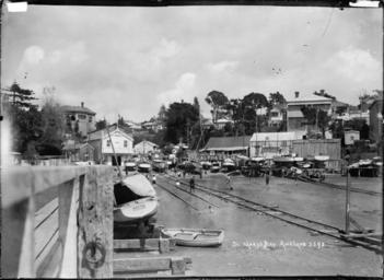 Keywords: blackandwhite monochrome outdoor photo border skyline black and white View taken from the wharf of the yachts up on the landing slip at St Marys Bay. Boat building and engineering businesses can be seen behind the boats. Boys are playing in the foreground. Taken by William A Price ca 1914 Inscriptions: Inscribed - Photographer's title on negative -bottom right: St Marys Bay. Auckland. 3592. Quantity: 1 b&w original negative(s). Physical Description: Dry plate glass negative 4.5 x 6.5 inches Shelly Beach, Auckland. Price, William Archer, 1866-1948 :Collection of post card negatives. Ref: 1/2-001178-G. Alexander Turnbull Library, Wellington, New Zealand. natlib.govt.nz/records/23023737 View taken from the wharf of the yachts up on the landing slip at St Marys Bay. Boat building and engineering businesses can be seen behind the boats. Boys are playing in the foreground. Taken by William A Price ca 1914 Inscriptions: Inscribed - Photographer's title on negative -bottom right: St Marys Bay. Auckland. 3592. Quantity: 1 b&w original negative(s). Physical Description: Dry plate glass negative 4.5 x 6.5 inches Shelly Beach, Auckland. Price, William Archer, 1866-1948 :Collection of post card negatives. Ref: 1/2-001178-G. Alexander Turnbull Library, Wellington, New Zealand. natlib.govt.nz/records/23023737