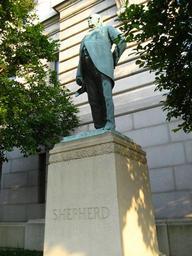 | Keywords: Shepherd statue at Wilson Building.jpg Standing portrait of Shepherd dressed in a suit consisting of a long coat high-collared shirt and wide tie In his proper right hand he holds a scrolled map of the city of Washington down at his side His proper left arm is bent and rests at the small of his back His hair is close cropped and he stares straight ahead The sculpture rests on a two-tiered stone base Save Outdoor Sculpture District of Columbia survey 1993 Source Inventories of American Painting and Sculpture Smithsonian American Art Museum P O Box 37012 MRC 970 Washington D C 20013-7012 SOS Link http //siris-artinventories si edu/ipac20/ipac jsp profile all source ~ siartinventories uri full 3100001~ 20548~ 0 focus originally posted to Flickr as http //flickr com/photos/96463101 N00/2557027974 Shepherd statue at Wilson Building 2008-06-05 19 19 45 http //flickr com/people/96463101 N00 Rudi Riet PD-100 User Flickr upload bot/upload 23 52 6 November 2010 UTC Missvain cc-by-sa-2 0 Public art in Washington D C |