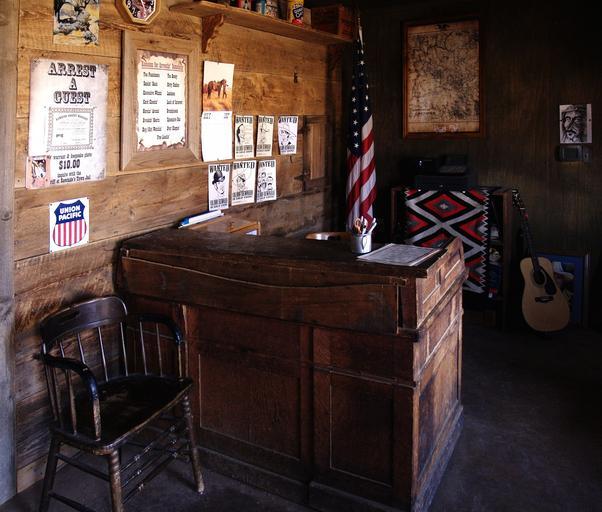 Keywords: sheriff office heritage old furniture desk american flag building room wild west usa