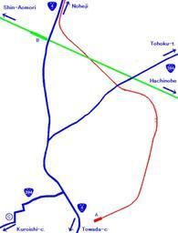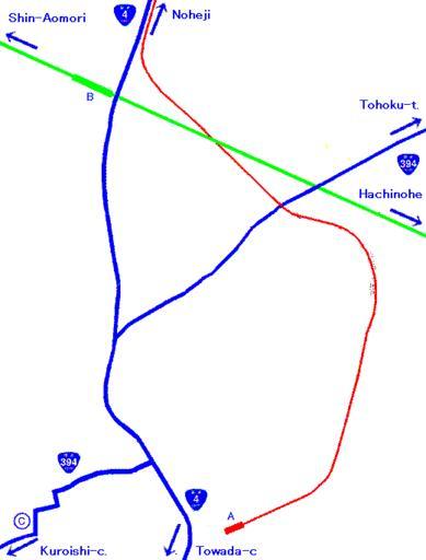 | Keywords: Shichinohe staion old and new.png en Shichinohe station old and new in Aomori prefecture Red Nambujuukan Railway Green Tohoku Shinkansen Blue National Highway A B Shichinohe stn C Shichinohe Town office before merging ja 新旧の七戸駅 赤 南部縦貫鉄道 緑 北新幹線 国道 A 南部縦貫鉄道七戸駅 B 北新幹線七戸駅 C 合併前の七戸町庁舎 合併後の七戸出張 投稿 成 user Penpen 2008-07-15 Nanbu Jukan Railway Shichinohe Aomori |
