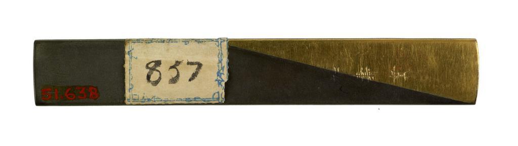 Keywords: Shigeta Kazutsura - Kozuka with a Sparrow and a Pigeon - Walters 51638 - Back.jpg A sparrow in copper silver and gold is on the left and a pigeon in silver is on the right Between them are seeds made of gold The back of the kozuka is made of shibuichi and gold between 1794 1815 Edo shakudo shibuichi silver copper gold cm 9 6 l accession number 51 638 29681 Henry Walters Baltimore date and mode of acquisition unknown Walters Art Museum Henry Walters Acquired by Henry Walters Signature Kazutsura Sticker - edged with a blue trellis pattern 857 place of origin Kyoto Japan Walters Art Museum license Kozuka in the Walters Art Museum Shigeta Kazutsura Media contributed by the Walters Art Museum needs category review |