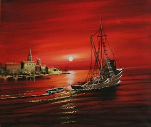 Keywords: ship boot sunset