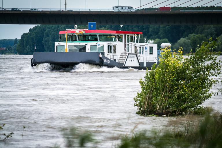 Keywords: ship bridge high water river rhine tracking ship boot water bug bow wave