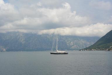 Keywords: ship sea sky journey port bay city mountains sail montenegro cruise wave
