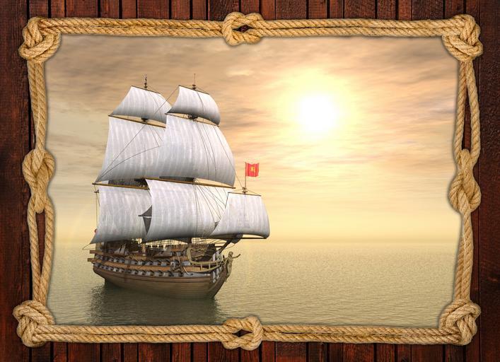 Keywords: ship sea wave romance sails sailboat calm wind sun landscape frame decor design ornament node decorative style creativity clearance rope marine sites marine theme element