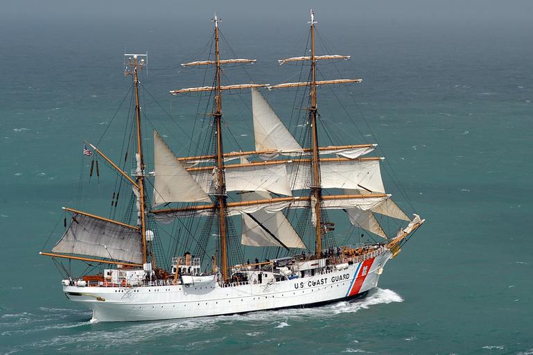 Keywords: ship tall vessel sea sailing nautical coast guard sail ocean maritime water cruise rigging cutter eagle