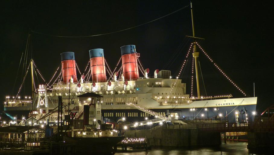 Keywords: ship vessel boat cargo transportation sea cruise disney sea passengers vacation night lighting dock dark ocean harbour america columbia