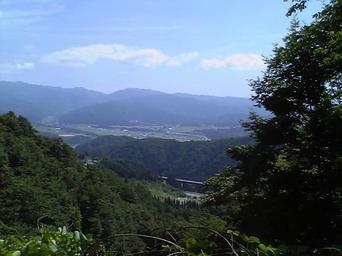 Keywords: Shirotori from Aburazaka Pass.JPG 油 隧道より白鳥町の own Photo by me Yones 2007-08-26 Gujo Gifu Landscapes of Hokuriku Route 158 Japan Mountain passes of Japan