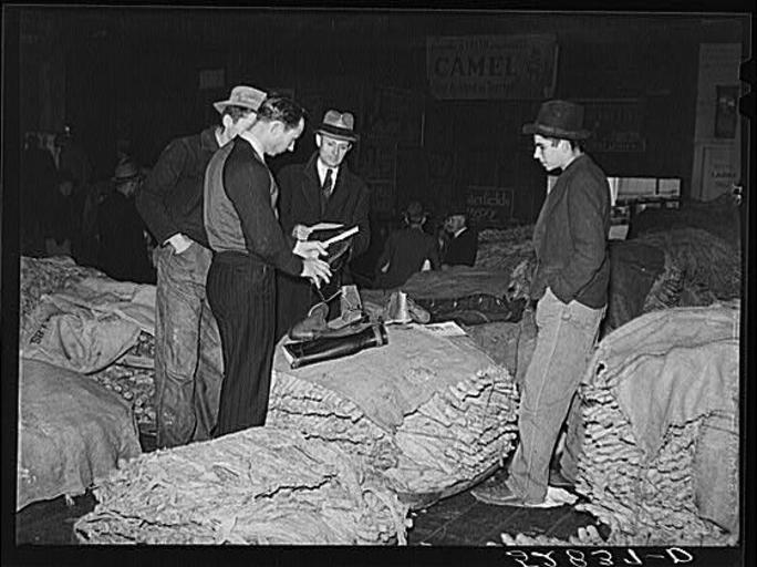 | Keywords: Shoe Salesman.jpg en Salesman in tobacco warehouse selling shoes and boots to farmers during auction sale Durham North Carolina 2013-12-03 11 51 38 Farm Security Administration Creator Marion Post Wolcott PD-USGov Uploaded with UploadWizard History of Durham North Carolina History of tobacco Farmers from the United States Shoe sellers Marion Post Wolcott |