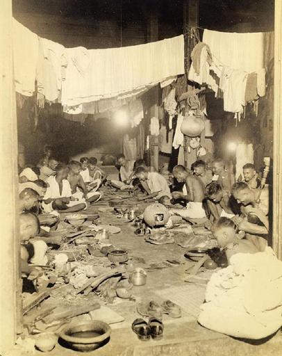 Keywords: Shoemaking and laundry shop in Calcutta in 1945.jpg Downone alley you might see a shop such as this one packed with shoemakers sewing and cutting or pulling on a hookah such as the one at right Combined with the shoemaking enterprise is a laundry dhobie During monsoon dhobie must contrive to dry clothes inside tho hampered by shortage of sheltered spaces The South Asia Section of the Van Pelt Library University of Pennsylvania recently acquired from a bookdealer a photograph album consisting of 60 photographs of Calcutta taken most likely between 1945-1946 The photographer Mr Clyde Waddell also provided the interesting glosses accompanying each photograph Several attested copies of this work has emerged including one with a 'title page' held by the Southeastern Louisiana University in Hammond Louisiana Mr Waddell was a military photographer Many of his captions sound like annotations that would be found in a typical military magazine The album begins with several general long shots of Calcutta and ends with a picture of dhobi-s washermen washing clothes The text accompanying the last photograph also sounds as if the author intended to finish with that picture of one of the great mysteries of India The annotations have been included because of their intrinsic interest not only to the photographs but to a 'typical' American impression of India at this time 1945 http //www library upenn edu/collections/sasia/calcutta1947/ Clyde Waddell other versions PD-USGov Van Pelt Library University of Pennsylvania - Clyde Waddell Calcutta 1940's photos Uploaded with UploadWizard Shoemakers from India Shoemaking workshops Laundry in India |