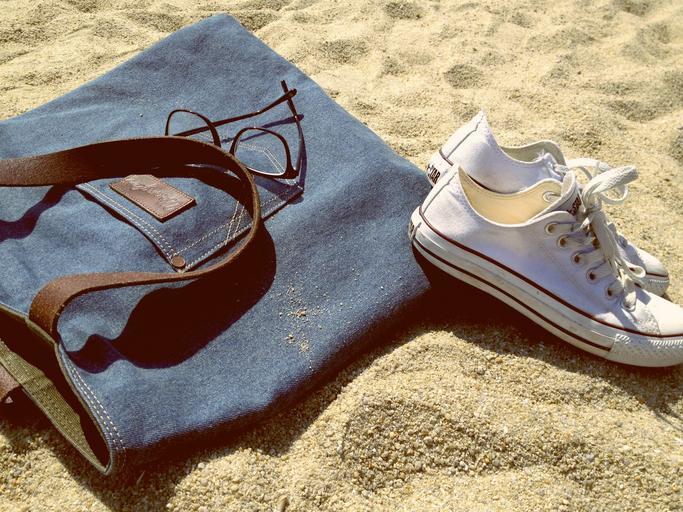 Keywords: shoes bag handbag glasses sand beach footwear vacation leisure accessories purse