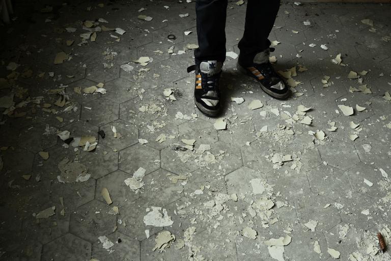 Keywords: shoes floor fashion footwear style modern casual dress dirty paving pavement sneakers pants ground messy