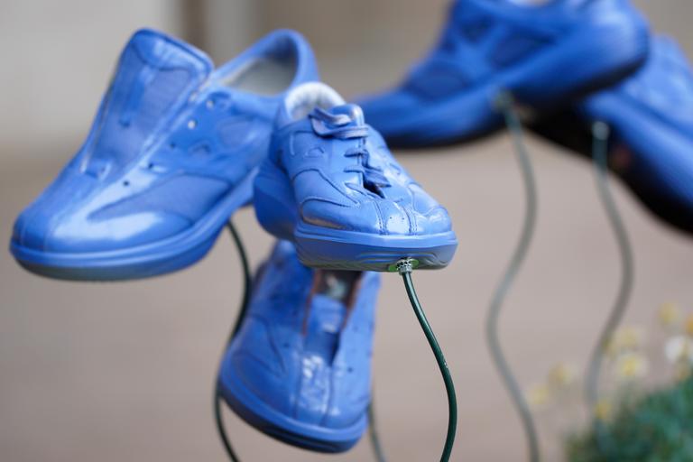Keywords: shoes sports shoes flower bed art blue