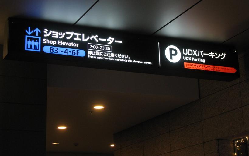 | Keywords: Shop Elevator.jpg Sign of Shop Elevator in Akihabara UDX Tokyo Japan ja ショップエレベーター / UDXパーキング Shop Elevator / UDX Parking Photographed by Vantey 2010-12-23 Uploader; Vantey Taken with Canon PowerShot SX100 IS Files uploaded by Vantey Engrish Bilingual signs in Japan Akihabara UDX Black background signs 2010 in Akihabara |
