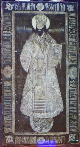 | Keywords: Shroud with the image of Saint Dimitrii of Rostov.jpg Shroud with the image of Saint Dimitry of Rostov Пелена с изоб ажением свт Димит ия адпись по к аю П авославия евнителю и аскола иско енителю осийски целебниче и новы къ Богу молитвенниче списами твоими всехъ уцеломуд ил еси цевнице духовная Димит ие блаженне моли Х иста Бога спастися Импе ат ице нашей Елисавете Пет овне всему наследию и де жаве Ея адпись на иконе Святитель Х истов Димит ий мит ополит Ростовски чудотво ец http //www veinik by/index/Rostovskii_muzei htm Российская импе ия в цвете before 1911 не известен фотог афия пелены - С П окудин-Го ский PD-Russia PD-1923 Photos of Rostov Museum by Sergey Prokudin-Gorsky Dimitry of Rostov Pokrov embroidery |