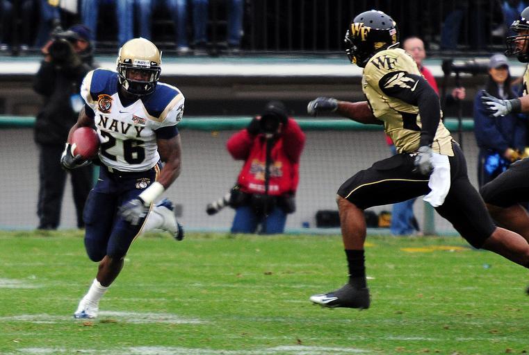 | Keywords: Shun White carries the ball at 2008 EagleBank Bowl 081220-N-0923G-003.jpg U S Naval Academy slotback Shun White left 26 takes the ball down the field during the inaugural EagleBank bowl college football game Saturday Dec 20 2008 against Wake Forest University at R F K Stadium in Washington http //www navy mil/view_image asp id 67533 2008-12-20 Mass Communication Specialist 2nd Class Dustin Gates USN PD-USGov-Military-Navy Files by User BrokenSphere 2008 EagleBank Bowl College American football in-game action |
