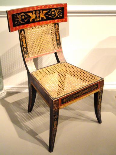 | Keywords: Side Chair, designed by Benjamin Henry Latrobe, decorated by George Bridport, Philadelphia, 1808, poplar and maple, gesso, paint and gold leaf, cane seat - National Gallery of Art, Washington - DSC08808.JPG en Furniture exhibited in the National Gallery of Art Washington DC USA This work is in the public domain because the maker s died more than 70 years ago 2013-04-07 11 36 59 own Daderot cc-zero Furniture in the National Gallery of Art Uploaded with UploadWizard Federal furniture Benjamin Henry Latrobe Furniture from Philadelphia Pennsylvania 1800s |