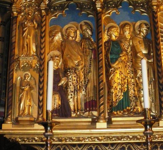 | Keywords: Side Panel St Augustine's Reredos.JPG en Part of the altar piece in St Michael's Chapel St Augustine's Church Kilburn Carved by Nathaniel Hitch own Weglinde Gordon Lawson Cc-zero Sculptures by Nathaniel Hitch Interior of St Augustine's Kilburn |