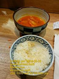 Keywords: Emporium Melbourne: Home Had Prawn Tom Yum Soup with Rice at 1000 Watt restaurant in Emporium Melbourne. The staff was friendly and amiable. It is difficult to remove the shells and the prawn head with the prawns submerged in the soup. With the rice filled to the brim in the bowl; the surface of the rice is too soft to peel the prawn shells effectively with cutlery. The Tom Yum soup was very tasty and delicious. For a developed country like Australia and with the standards for dining in restaurant, there may be a certain customer demographic that prefer to remove the shells with a spoon and fork (cutlery) rather than dirtying their fingers. The rice is of a high quality and comes from a single farm. A side plate would make a cleaner, neater and more presentable dining appearance to the restaurant to passing customers and for the diner him/herself. I love the ambience. I hope a side plate would be given to customers when they order dishes with bones and shells. Great food at affordable prices. retail melbourne australia