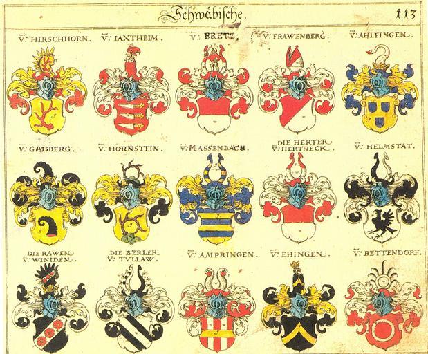 | Keywords: Siebmacher113.jpg Johann Siebmacher New Wappenbuch eingescannt aus Horst Appuhn Hrsg Johann Siebmachers Wappenbuch Die bibliophilen Taschenbücher 538 2 verb Aufl Dortmund 1989 Ritterschaft und Adel Schwäbische Blatt 113 Siebmachers Wappenbuch 1605 creator Johann Siebmacher Reproduction of a painting that is in the public domain because of its age thumb left PD-old-100 Siebmacher - Ritterschaft und Adel in Schwaben 113 Coats of arms of Alfingen family Coats of arms of Ampringen family Coats of arms of Bettendorff family Coats of arms of Bretz family Coats of arms of Ehingen family Coats of arms of Frauenberg family Coats of arms of Gaisberg family Coats of arms of Herter von Herteneck family Coats of arms of Hirschhorn family Coats of arms of Hornstein family Coats of arms of Jaxtheim family Coats of arms of Massenbach family Coats of arms of Rauch von Winnenden family Argent two bends sable ImageNote 1 1205 977 604 758 3001 2481 2 thumb Massenbach ImageNoteEnd 1 |
