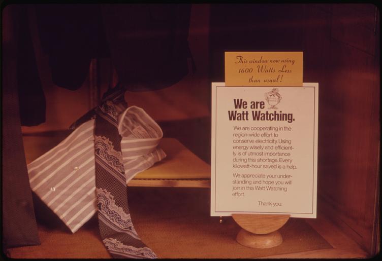 | Keywords: SIGN IN A DOWNTOWN PORTLAND BUSINESS WINDOW NOTES THAT WITH DISPLAY LIGHTS REDUCED MORE THAN 1,600 WATTS OF ENERGY... - NARA - 555456.tif  Scope and content General notes 555456 Local identifier 412-DA-13004 Environmental Protection Agency 12/02/1970 - NARA-Author Falconer David Photographer 1427627 <br /> Portland Or 4202528 45 517 -122 67 <br /> Still Picture Records Section Special Media Archives Services Division NWCS-S National Archives at College Park 8601 Adelphi Road College Park MD 20740-6001 1973-12 Record group Record Group 412 Records of the Environmental Protection Agency 1944 - 2006 Record group ARC 708 DOCUMERICA The Environmental Protection Agency's Program to Photographically Document Subjects of Environmental Concern compiled 1972 - 1977 Series ARC 542493 File unit File unit ARC Variant control numbers Agency-Assigned Identifier 217/44/013004<br /> NAIL Control Number NWDNS-412-DA-13004 yes Other versions <gallery> File SIGN_IN_A_DOWNTOWN_PORTLAND_BUSINESS_WINDOW_NOTES_THAT_WITH_DISPLAY_LIGHTS_REDUCED_MORE_THAN_1 600_WATTS_OF_ENERGY _-_NARA_-_555456 jpg jpg </gallery> NARA-cooperation PD-USGov Energy conservation 1973 in Portland Oregon Economy of Portland Oregon NARA TIF images with categorized JPGs |