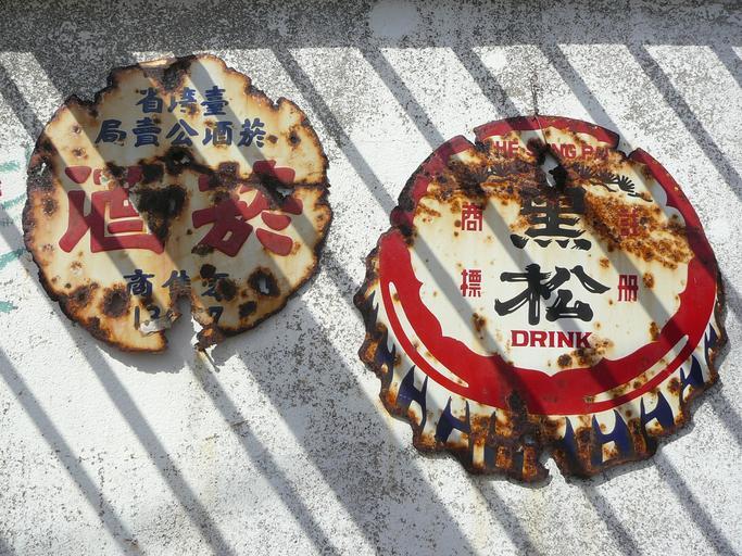 Keywords: sign signage old vintage chinese china asia taiwan drinks advert wall shadow light