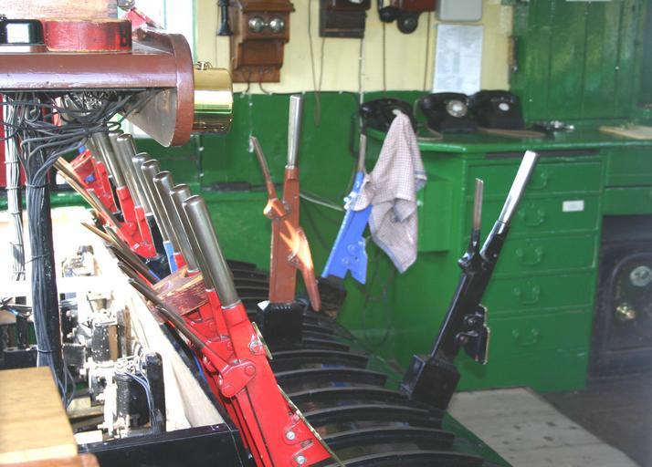 | Keywords: Signal box inside.jpg Inside a signal box on the Isle of Wight Steam Railway September 2004 2004-09-02 own assumed Malcolm Morley~commonswiki Isle of Wight Steam Railway Signal boxes on the Isle of Wight Tea towels ImageNote 1 556 1117 431 339 2852 2044 2 Wooden collar used to indicate the sections is occupied See Rule 55 ImageNoteEnd 1 ImageNote 2 1494 474 410 785 2852 2044 2 Tea Towel used to protect the levers from the signaller and <i>vice versa</i> ImageNoteEnd 2 | ||||