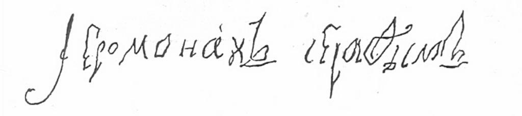 | Keywords: Signature Seraphim of Sarov.jpg ru Снимок поче ка Се афима Са овского 2013-12-07 16 06 28 скан из книги «Житие Се афима са овского чудотво ца» 1903 Се афим Са овский Custom license marker 2013 12 07 PD-old Uploaded with UploadWizard Signatures of people from Russia Seraphim of Sarov |