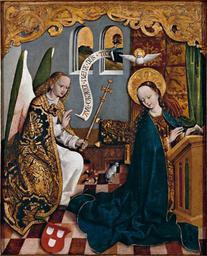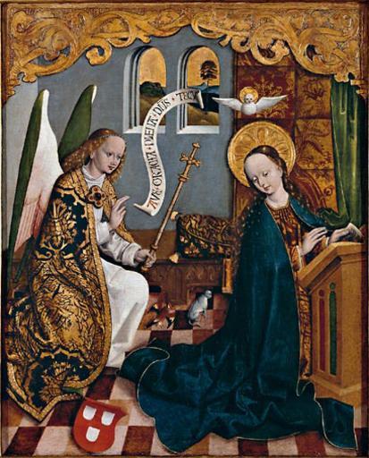 Keywords: Silesia Annunciation (1).jpg Silesia under influence of the German and Flemish art other date ca 1500 Tempera gold silver leaf glaze fir cm 88 74 2 Institution National Museum Warsaw accession number Śr 265 object history credit line Epitaph or votive image from the Bernardine Church in Wrocław today Museum of Architecture http //www kultur-online net/files/exhibition/01_18 jpg www kultur-online net PD-Art PD-old-100 DEFAULTSORT 1490-1500; Annunciation Gothic paintings in Poland Museum of Architecture in Wrocław Gothic paintings of Annunciation |
