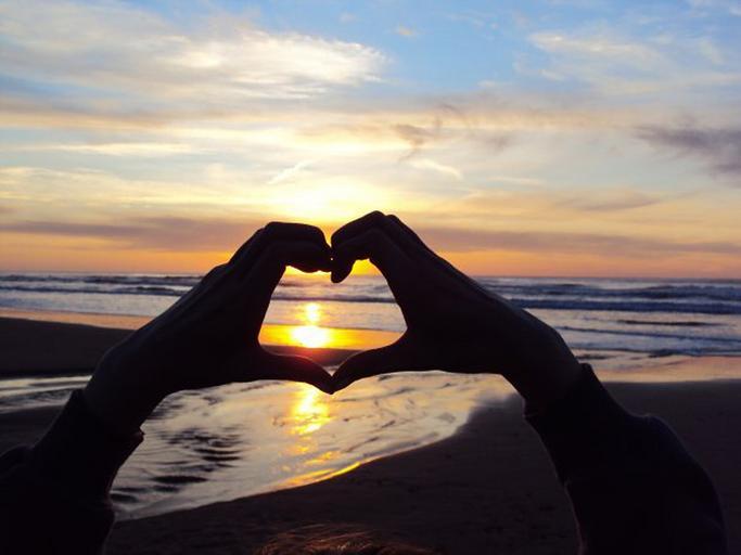 Keywords: silhouette beach sunrise sunset sand beach shadow heart