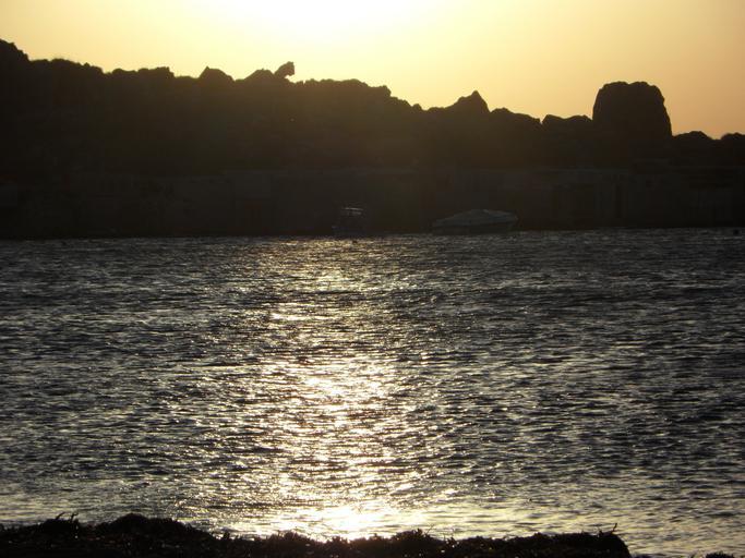 Keywords: silhouette sea coast rocky coast abendstimmung sparkle back light water